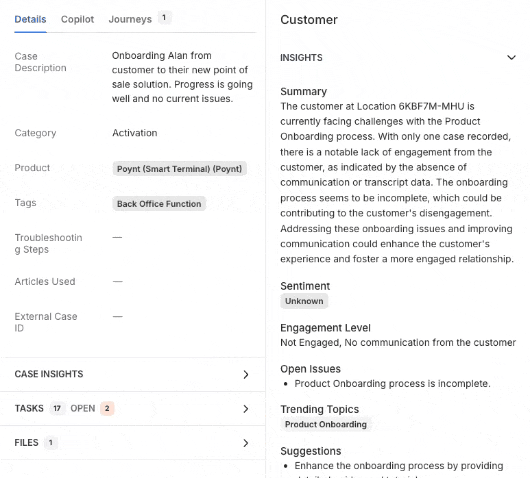 We’ve woven sentiment analysis and case summaries directly into your activity feed. Instead of piecing together the history from dozens of disparate cases and communications, your team gets an instant distillation of the facts and the customer’s overall emotional state. By turning minutes of reading into seconds of understanding, we protect your team’s cognitive bandwidth, allowing them to skip the detective work and move straight to high-value problem solving.