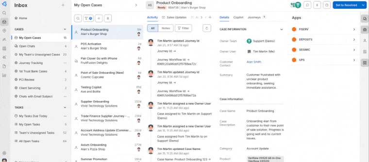 In the new workspace, the transition between your task list and a specific customer case is instantaneous. We’ve redesigned the workspace to ensure that your most important tools are never more than a glance away. We’ve merged role and user-specific tasks as well as broader case management in a single, high-fidelity view so that you can enjoy all the communication and historical data you need in one spot.