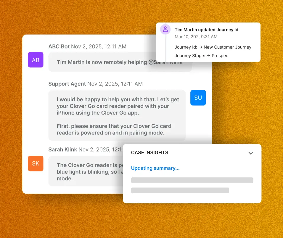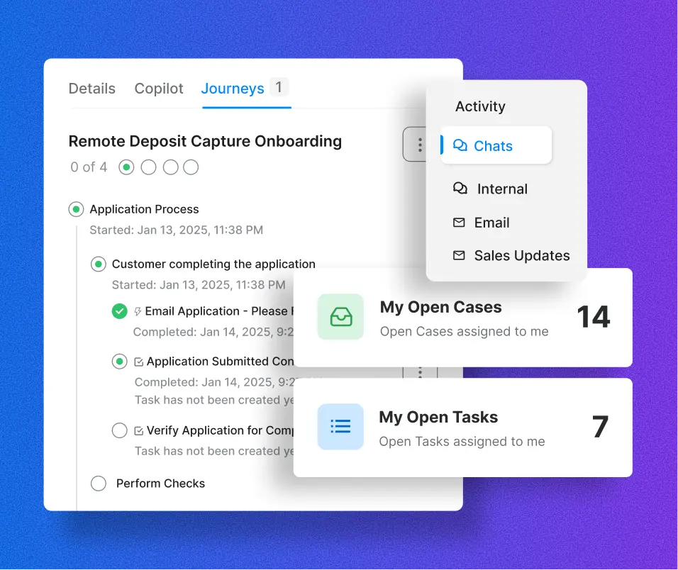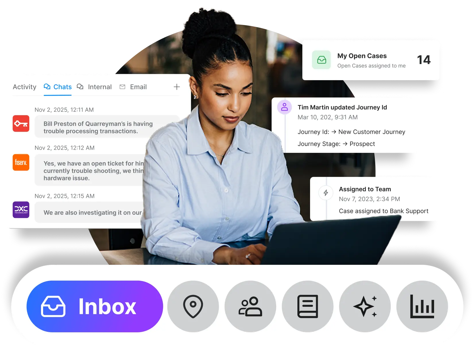 Finally, a platform built for community banks. See every customer interaction — across channels, your team, and your core — in one screen. Real-time updates and AI-powered summaries help your staff resolve issues faster with less effort.